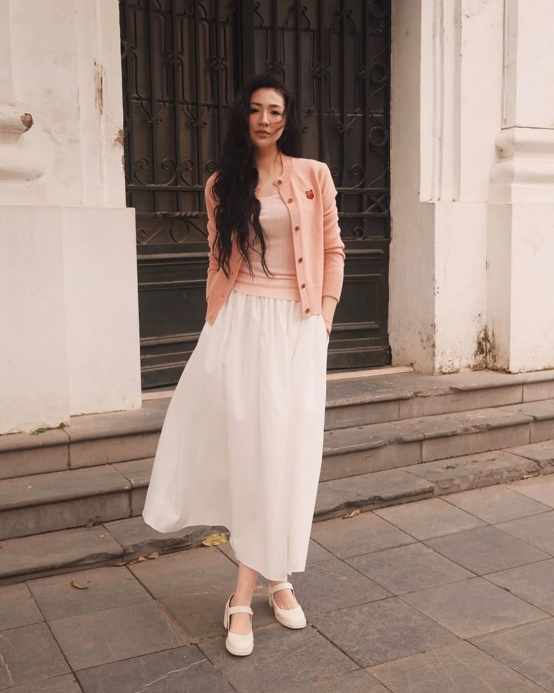 Á hậu Hoa hậu Việt Nam 2012 dường như đã tiên phong trong việc giới thiệu phong cách này đến công chúng, và giờ đây, nhiều người đã bắt đầu chú ý và làm theo. Việc chọn áo thun và cardigan không chỉ giúp người mặc thể hiện phong cách sống năng động mà còn là sự lựa chọn thông minh cho những ai muốn tỏa sáng sự tự tin trong từng bước đi.