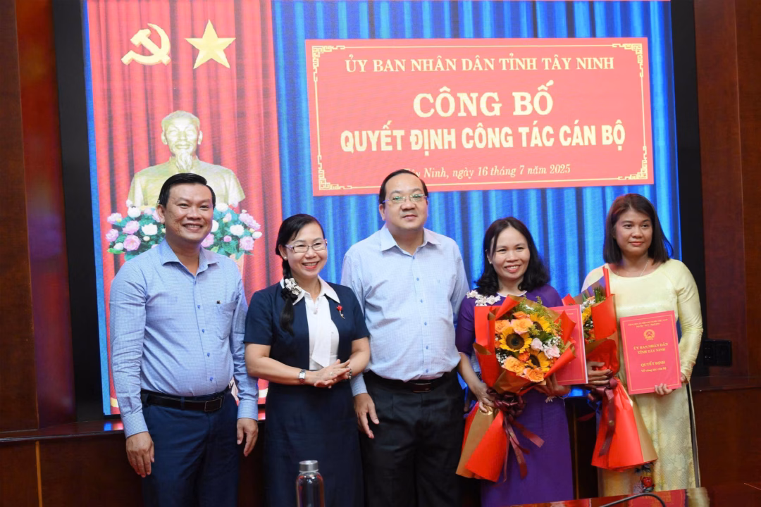 Ngày 16/7/2025, tại tỉnh Tây Ninh, một buổi lễ quan trọng đã diễn ra để trao quyết định của UBND tỉnh về công tác cán bộ. Phó Chủ tịch UBND tỉnh, ông Nguyễn Minh Lâm, đã chủ trì buổi lễ này, bên cạnh sự tham gia của Phó Bí thư Đảng uỷ UBND tỉnh, ông Nguyễn Văn Chóng. Trong buổi lễ, đại diện Sở Nội vụ đã công bố các quyết định của Chủ tịch UBND tỉnh liên quan đến việc bổ nhiệm và điều động cán bộ trong các sở, ban, ngành của tỉnh.