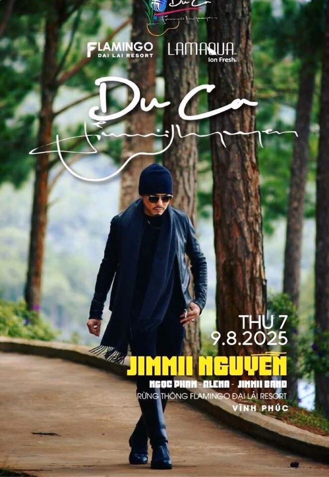 Ca sĩ Jimmii Nguyễn mới đây đã công bố thông tin về chuyến hành trình tiếp theo của chuỗi chương trình ‘Du ca Jimmii Nguyễn’. Chương trình dự kiến sẽ diễn ra vào lúc 19h ngày 9/8 tại sân khấu Rừng Thông Flamingo Đại Lải Resort. Sau hai chuyến du ca thành công tại Hà Nội và biển Cửa Lò (Nghệ An), nam danh ca tiếp tục mang âm nhạc của mình đến với không gian lãng mạn của rừng thông Đại Lải.