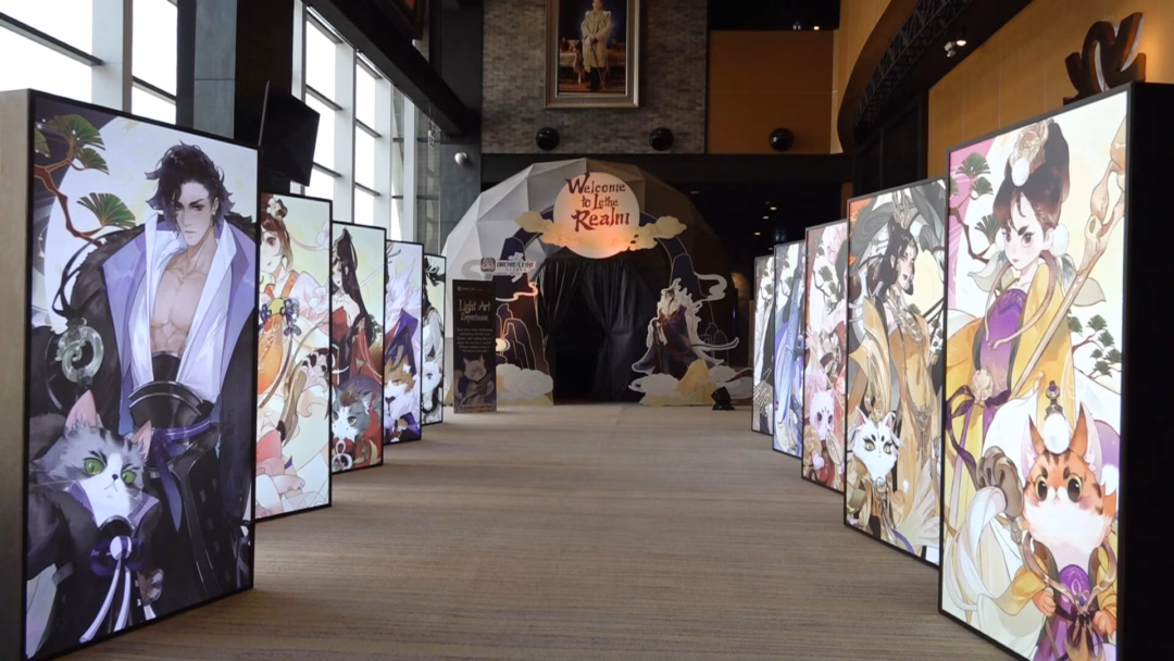 Khách tham gia sự kiện đã được trải nghiệm một không gian được thiết kế giống như một triển lãm nghệ thuật, với “Bức tường danh sĩ” trưng bày những bức tranh minh họa các nhân vật trong game theo phong cách cổ phong độc đáo. Bên cạnh đó, họ cũng có cơ hội bước vào một vòm ánh sáng tương tác, nơi công nghệ trình chiếu đa lớp kết hợp với ánh sáng chuyển động và âm nhạc tạo nên một “lối đi” thị giác sống động, giống như trong chính game.